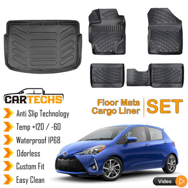 Floor Mats + Cargo Trunk Liner Fits Toyota Yaris 2013-2019 3D Molded Black SET