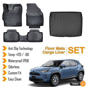Floor Mats +UPPER Cargo Trunk Liner For Toyota Yaris Cross 2022-2023 Black SET