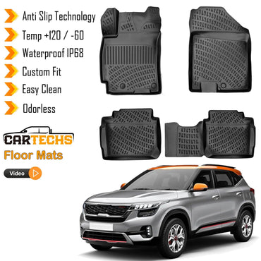 Floor Mats Liner Fits Kia Seltos 2021-2024 Waterproof Eco 3D Molded Black 4 Pcs