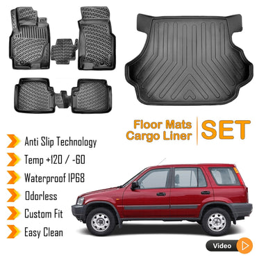 Floor Mats + Cargo Trunk Liner Fits Honda CR-V 1995-2001 3D Molded Black SET