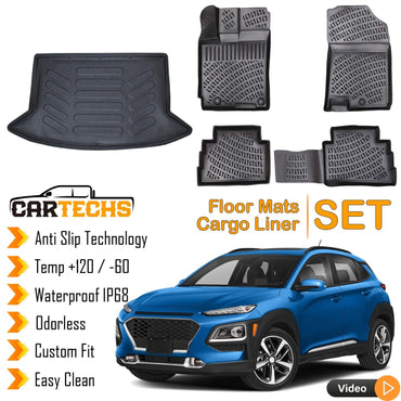 Floor Mats + Cargo Trunk Liner Fits Hyundai Kona 2018-2023 Waterproof 3D SET