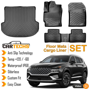 Floor Mats + Cargo Trunk Liner Fits Hyundai Santa Fe Gasoline 2020-2024 SET