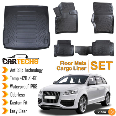 Floor Mats + Cargo Trunk Liner Fits Audi Q7 2006-2015 3D Waterproof Black Set