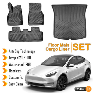 Floor Mats + Cargo Trunk Liner Fits Tesla Model Y 2020-2024 3D Molded Black SET