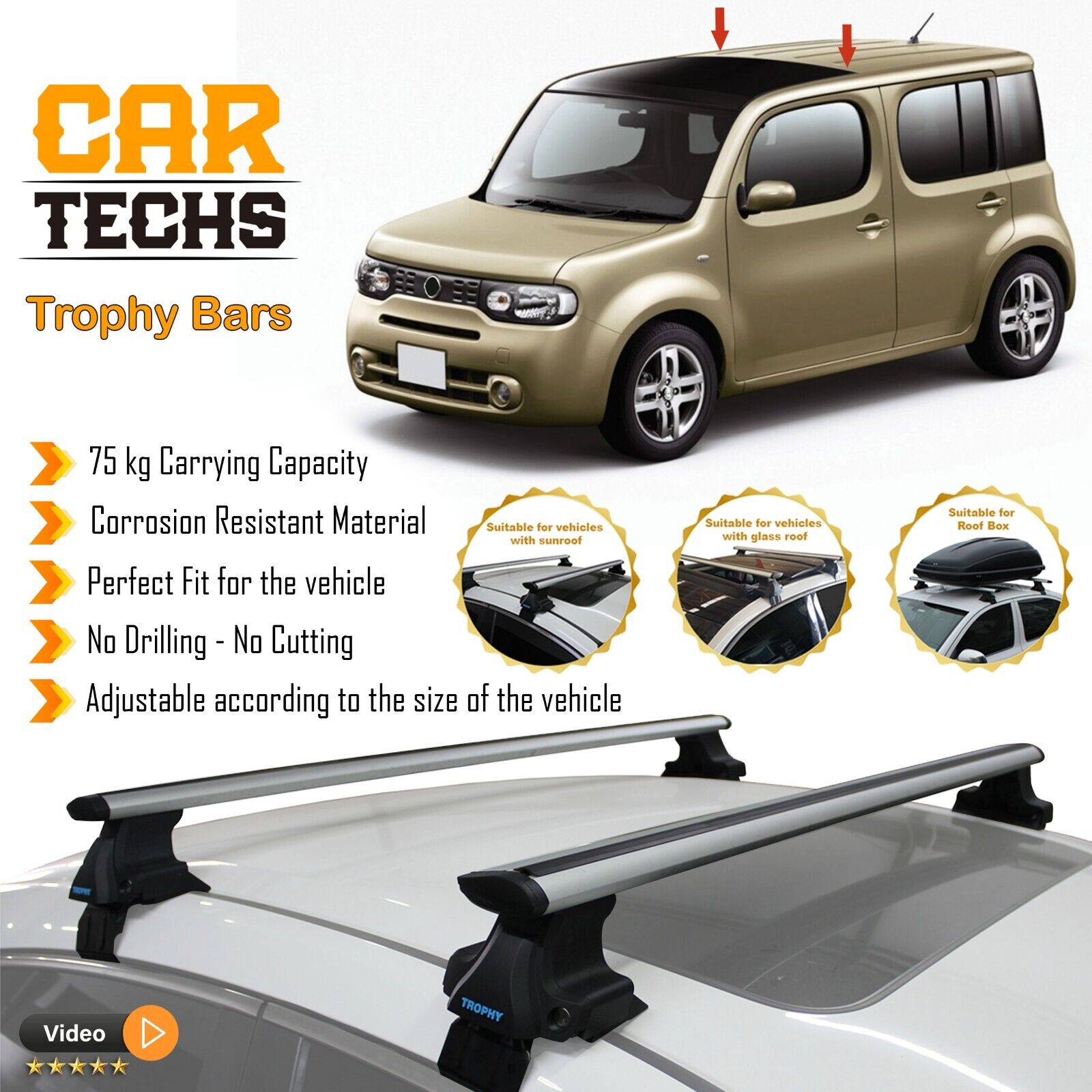 Fits Nissan CUBE 2009-2014 Smooth Top Roof Rack Cross Bar Carrier Rail